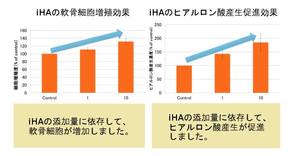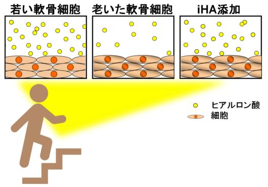 iHA(アイハ)は減ってしまった軟骨細胞のヒアルロン酸の産出を促進する効果が発見されました。